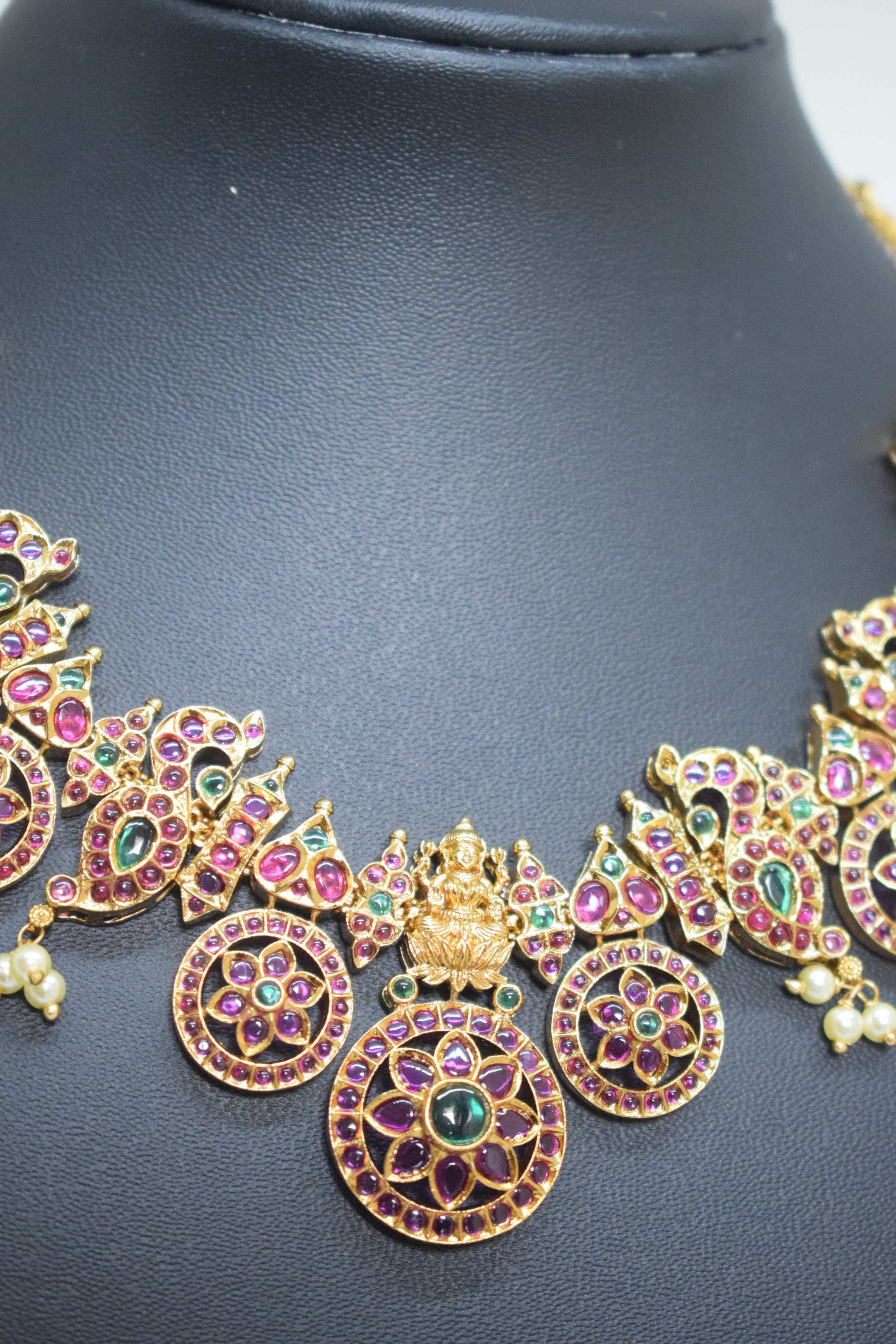 The Bottu Mala Ruby with matching earrings offers a royal, elegant look perfect for festivals and special events.