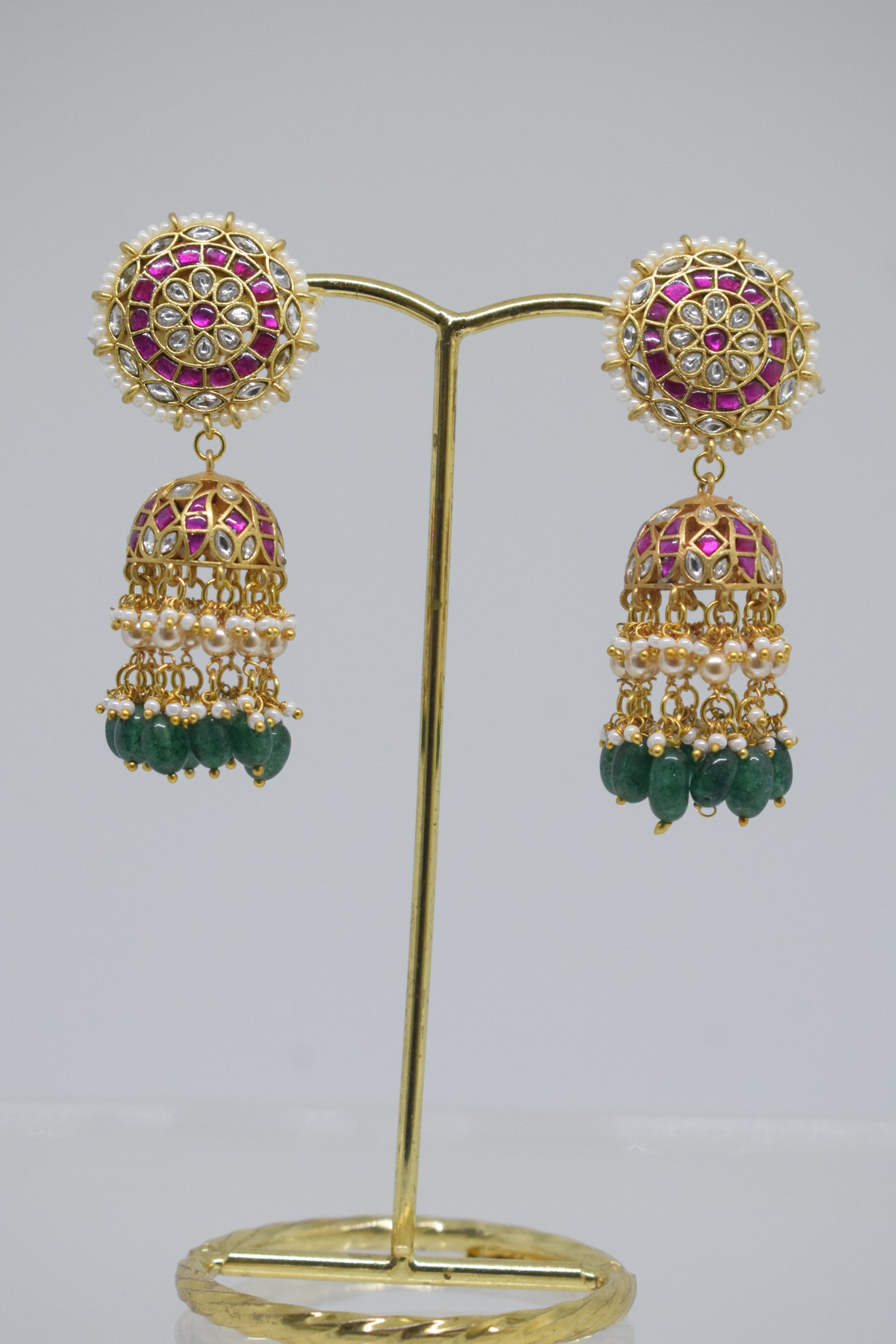 Elevate your festive and wedding attire with these premium Jadau Kundan long jhumkas, expertly crafted for timeless elegance. Their intricate design and exquisite craftsmanship add a regal touch to any celebration.