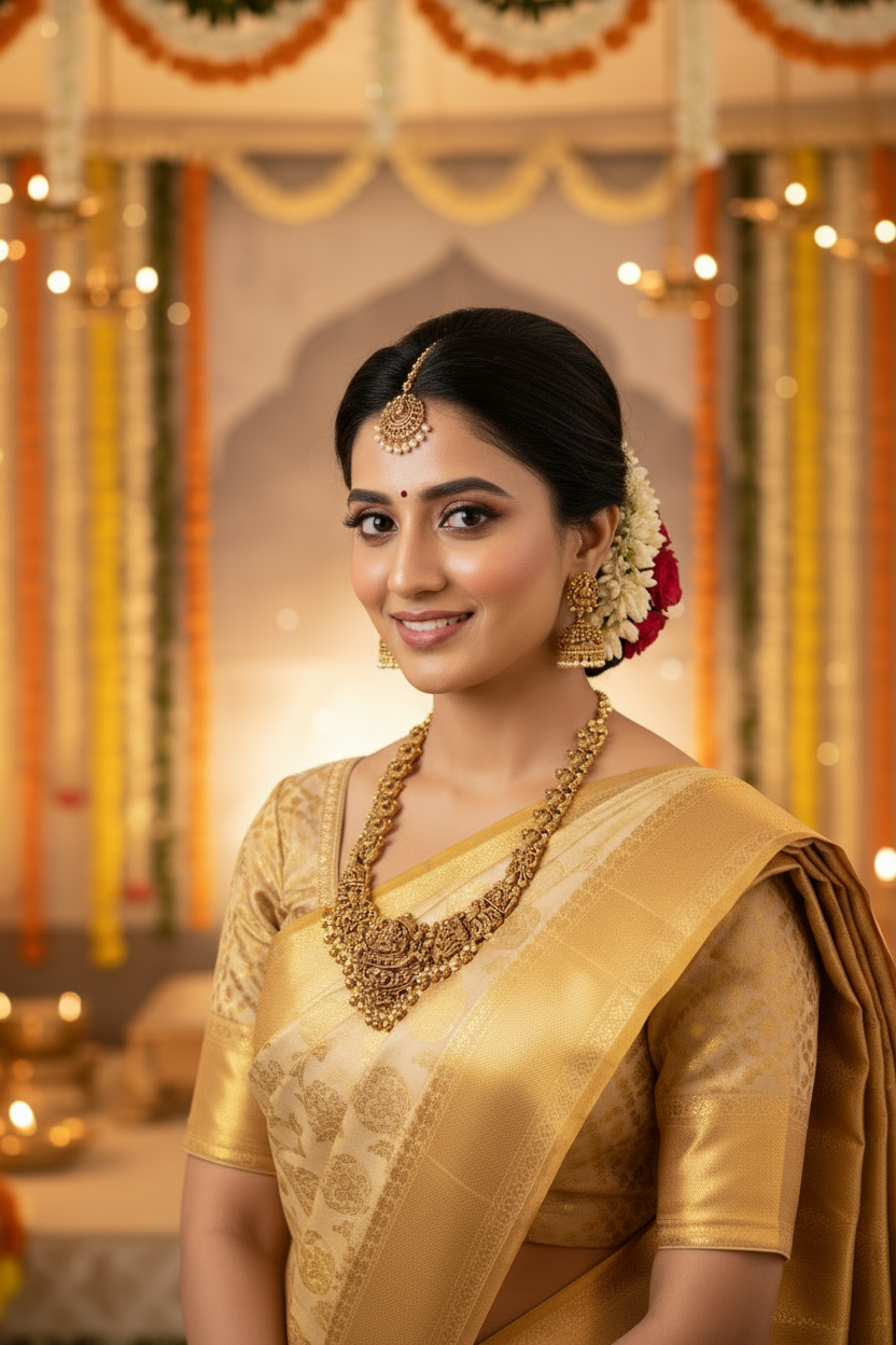 Elevate your traditional ensemble with this Premium Matt 3D Temple Lakshmi Long Haram, exquisitely designed with intricate craftsmanship. Featuring delicate pearl drops and matching jhumkas, this set complements silk sarees and lehengas perfectly, making it an ideal choice for weddings and special ceremonies. Its rich temple motifs and matt finish add a timeless elegance that enhances your festive look with grace and sophistication.