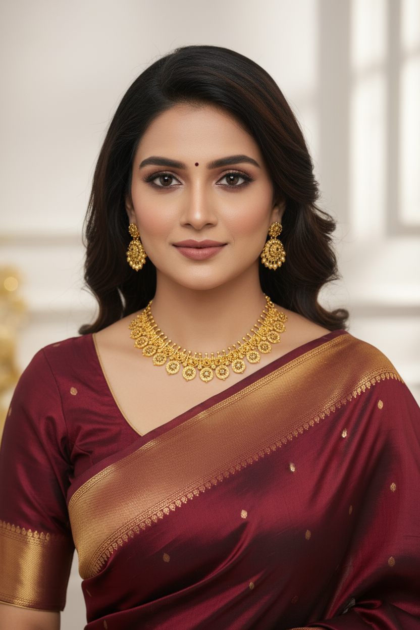 Elevate your sarees and suits with this short Bottu maala embellished with stones, offering an elegant and rich ethnic appeal. Perfectly crafted to enhance traditional ensembles with refined charm.