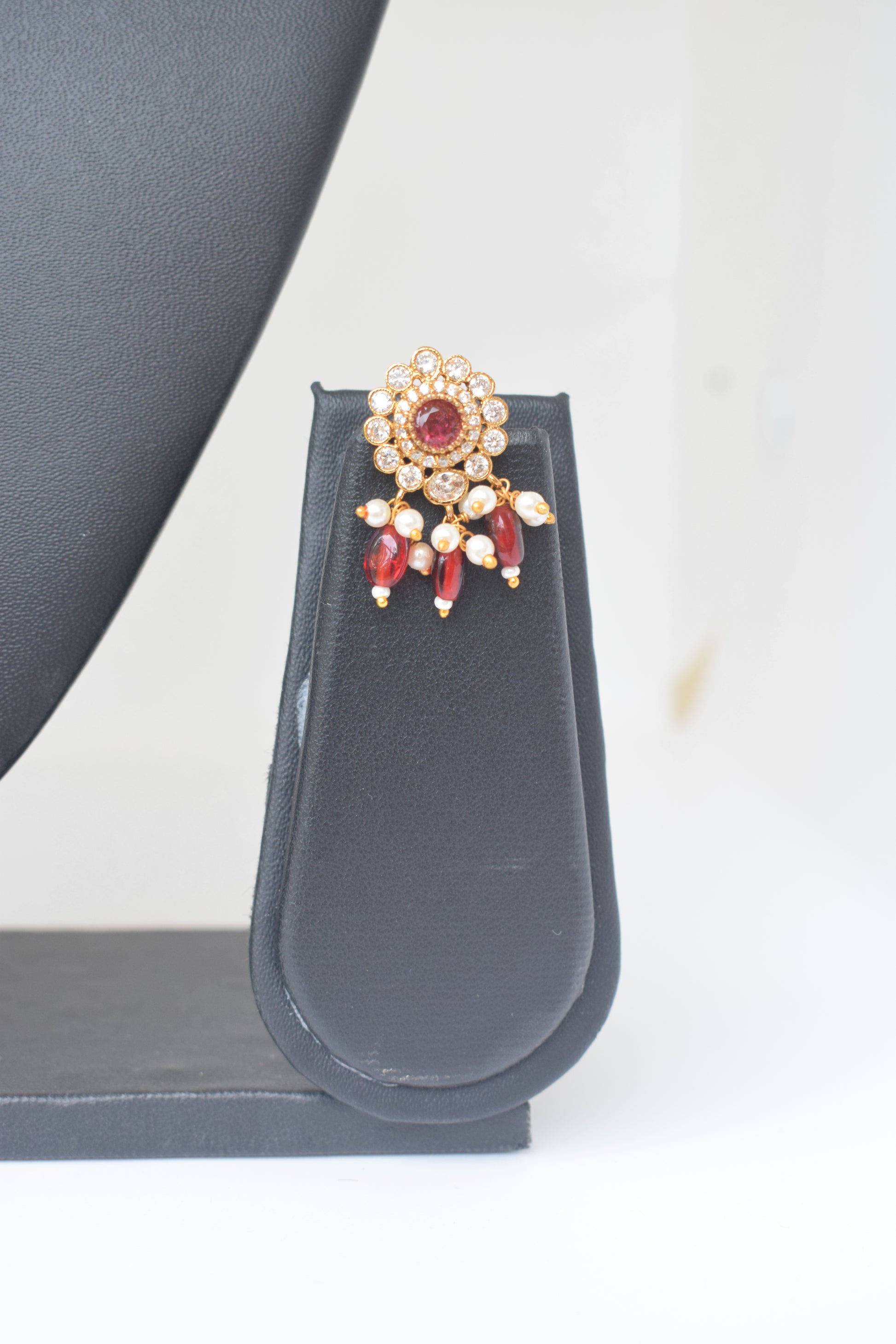 This exquisite single-line chain showcases a harmonious blend of pink and white stones, complemented by delicate pearl drops. Paired with matching earrings, this set offers a timeless and elegant accessory choice for refined occasions.