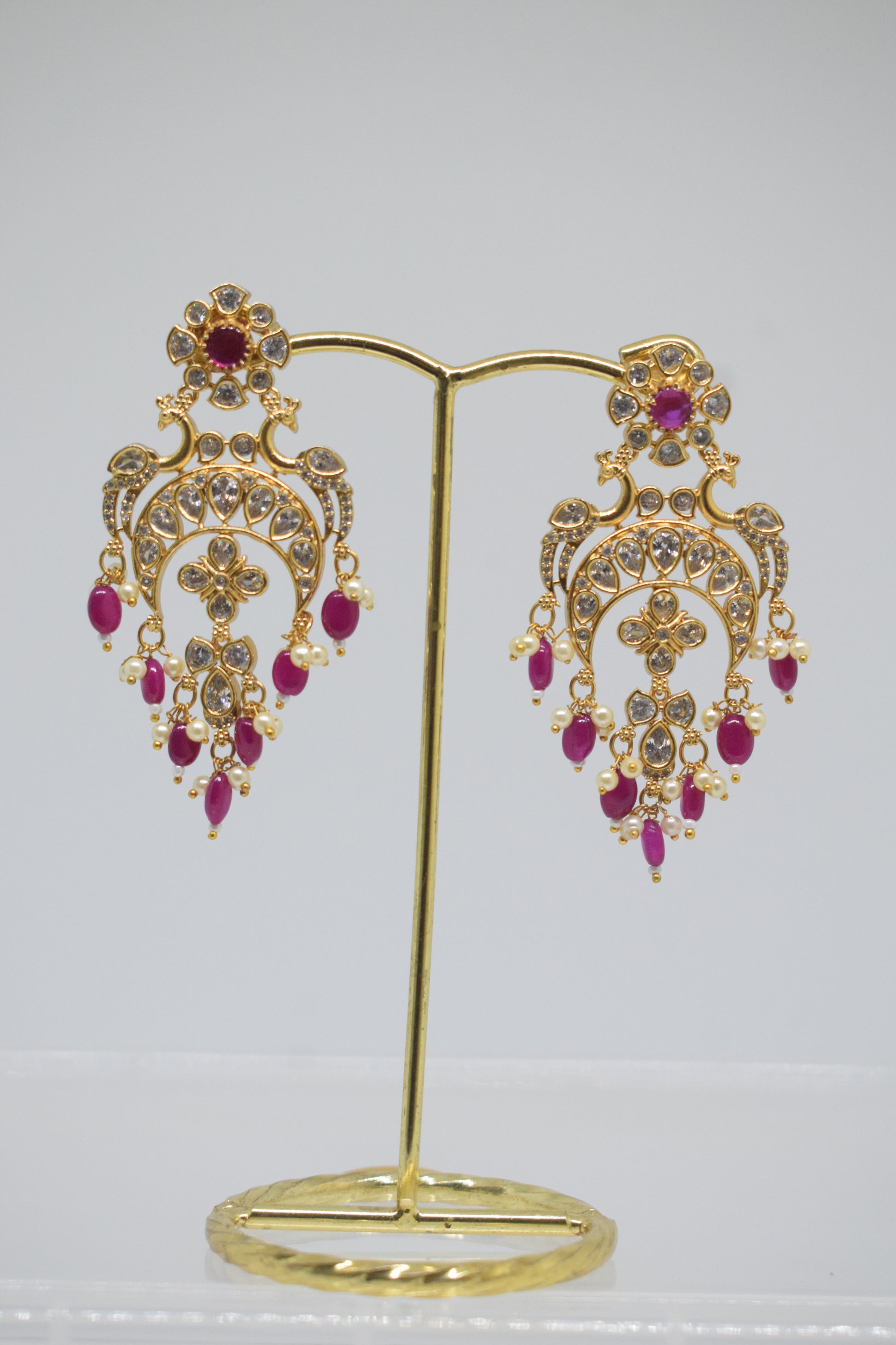 These Statement Earrings feature elegant pink beads, perfectly crafted for parties, receptions, and weddings. Their bold design adds a stylish touch to your outfit, elevating your look with a sophisticated flair. Ideal for special occasions, they combine vibrant color with eye-catching craftsmanship to complement festive attire effortlessly.