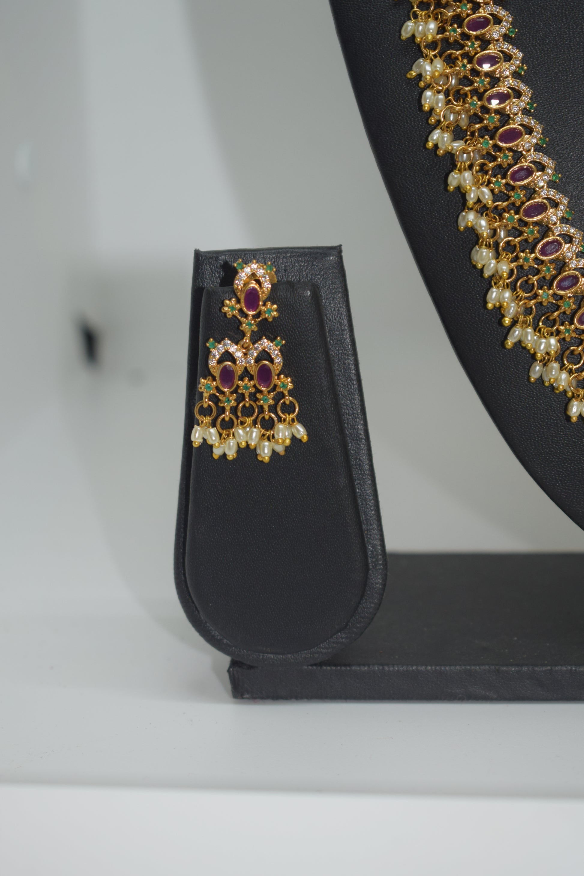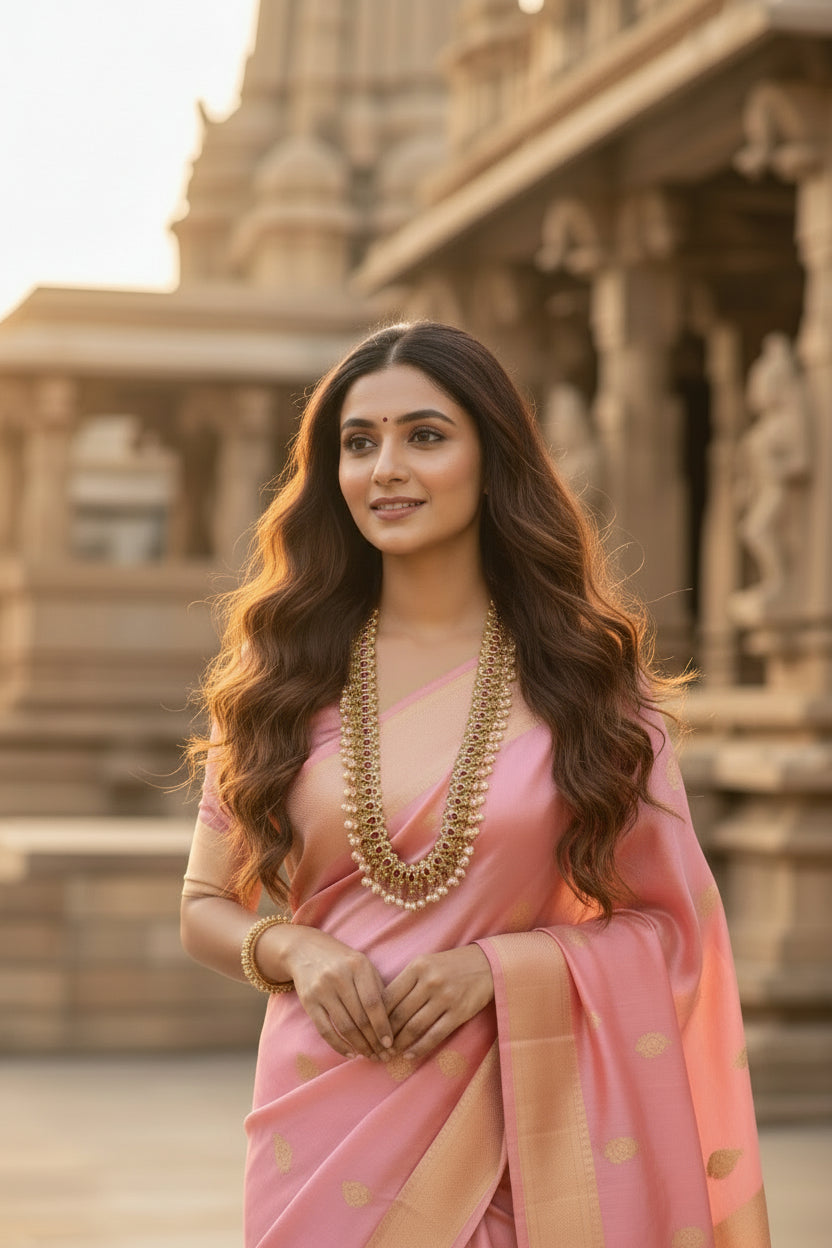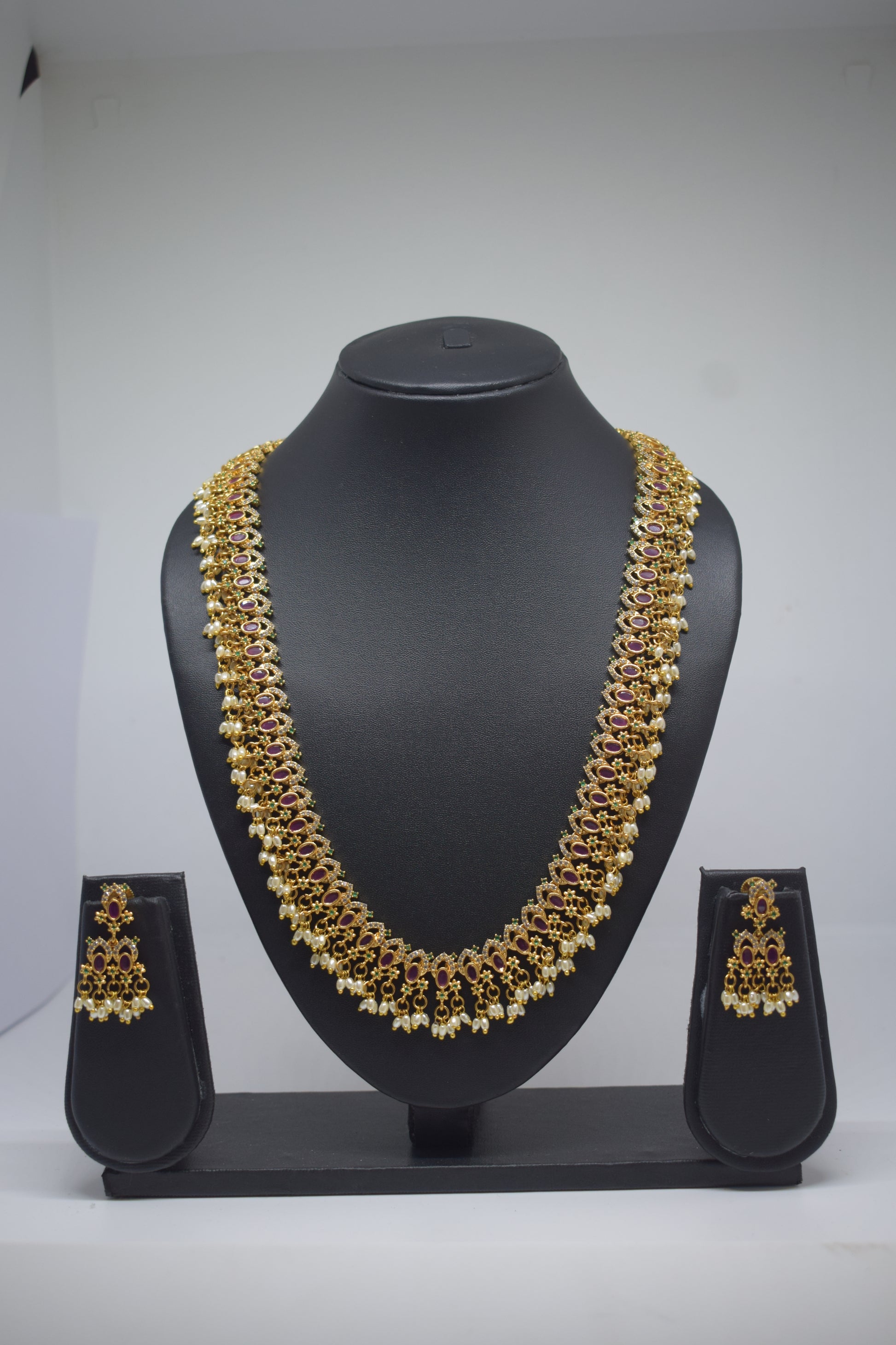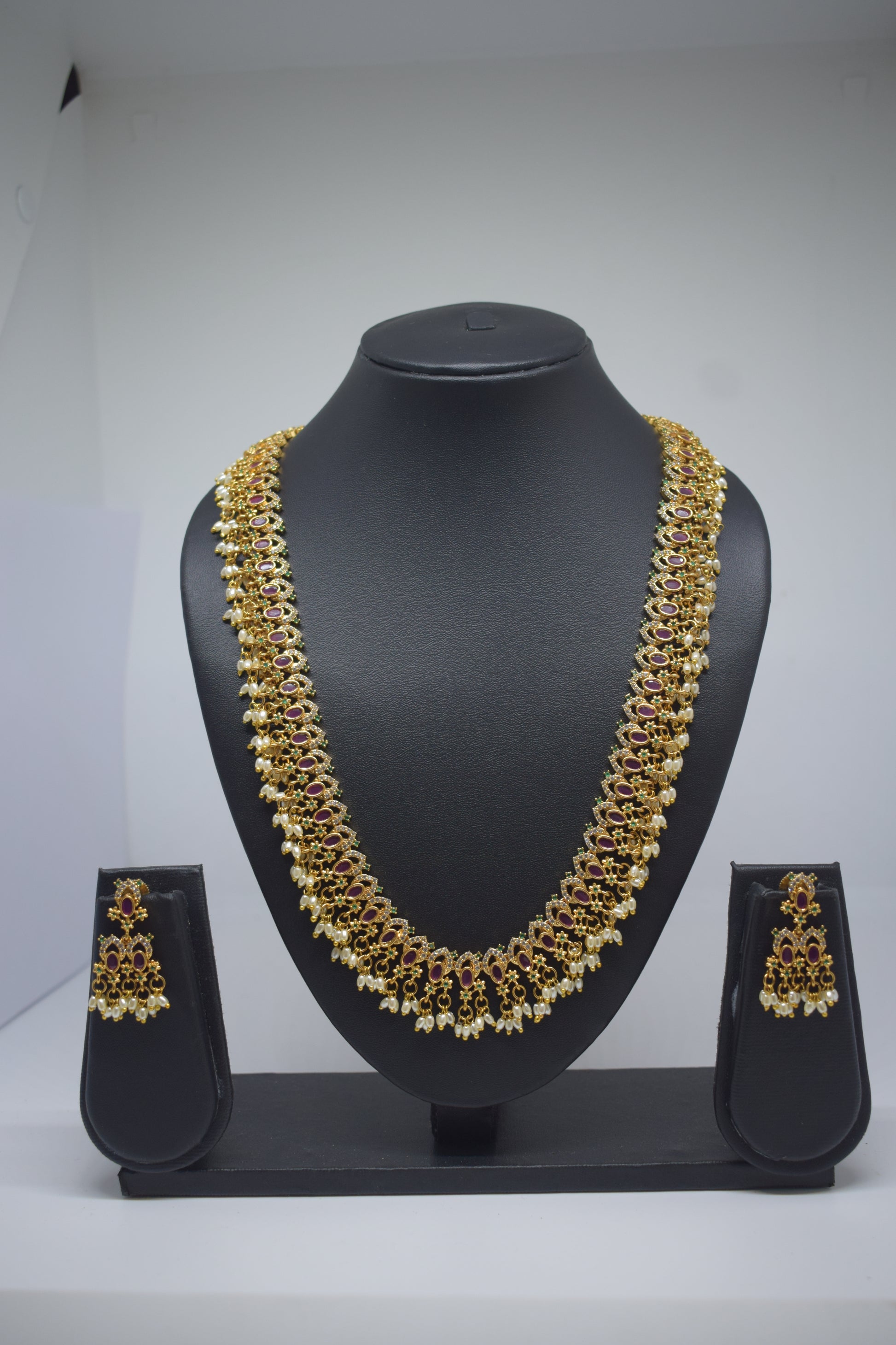 The Two in One Gutta Poosalu Long Chain features exquisite motifs that elegantly enhance silk sarees, adding a touch of sophistication ideal for weddings and festive occasions. Its refined design not only complements traditional attire but also doubles as a saree belt, offering versatility and enhancing your ensemble with grace and charm. Perfect for elevating your special occasion wardrobe with expert craftsmanship.